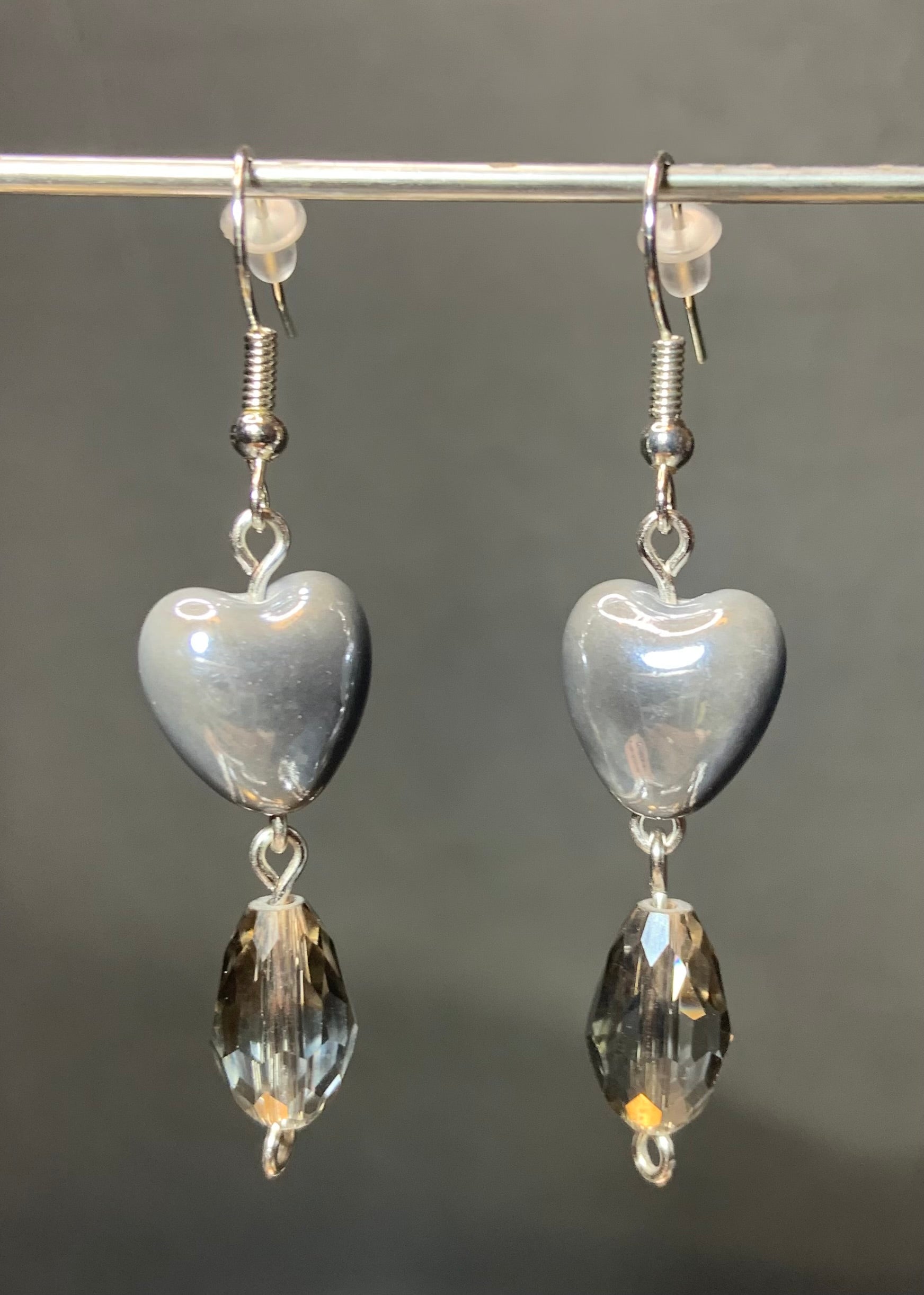 Gray Heart Earrings